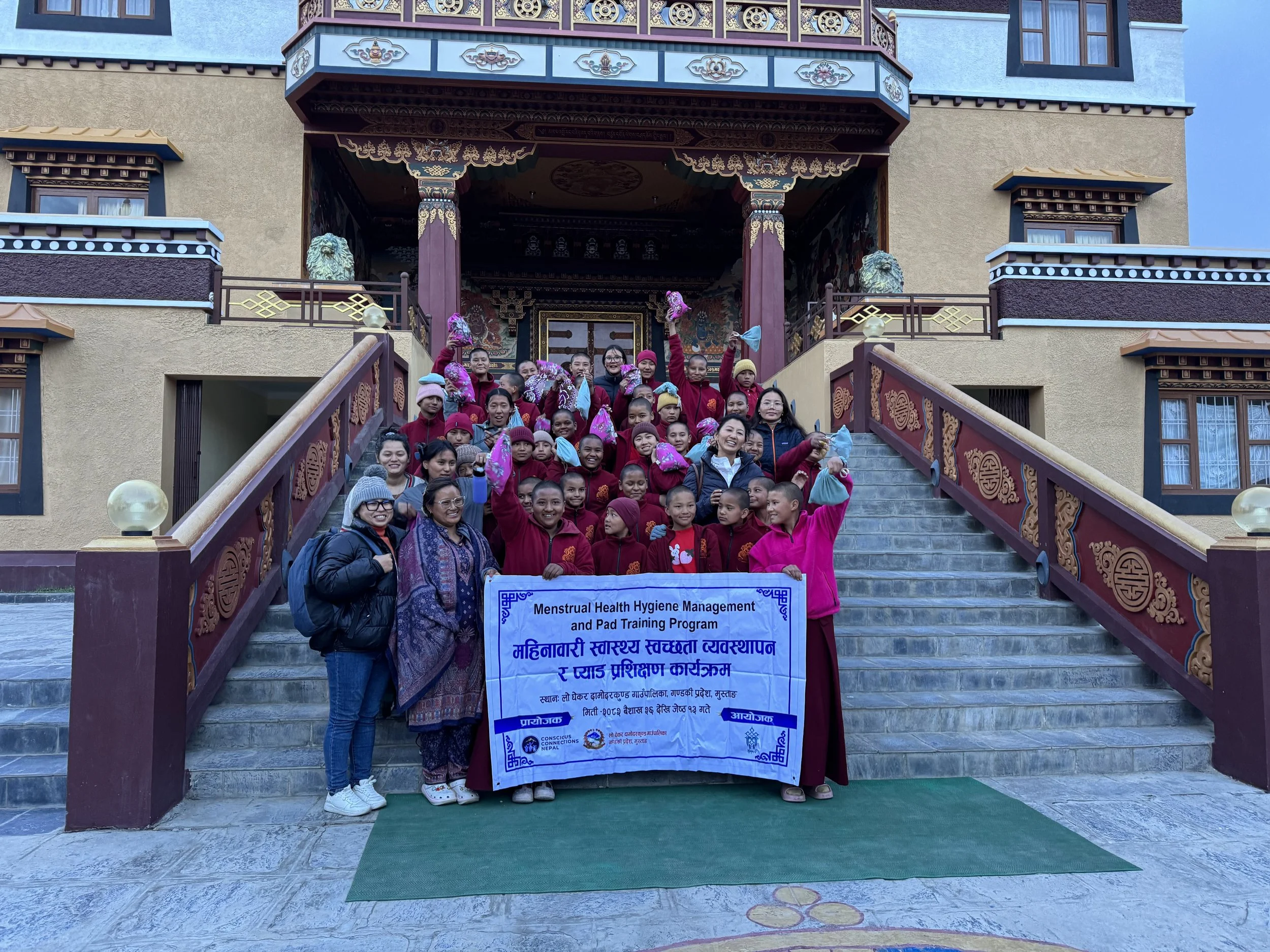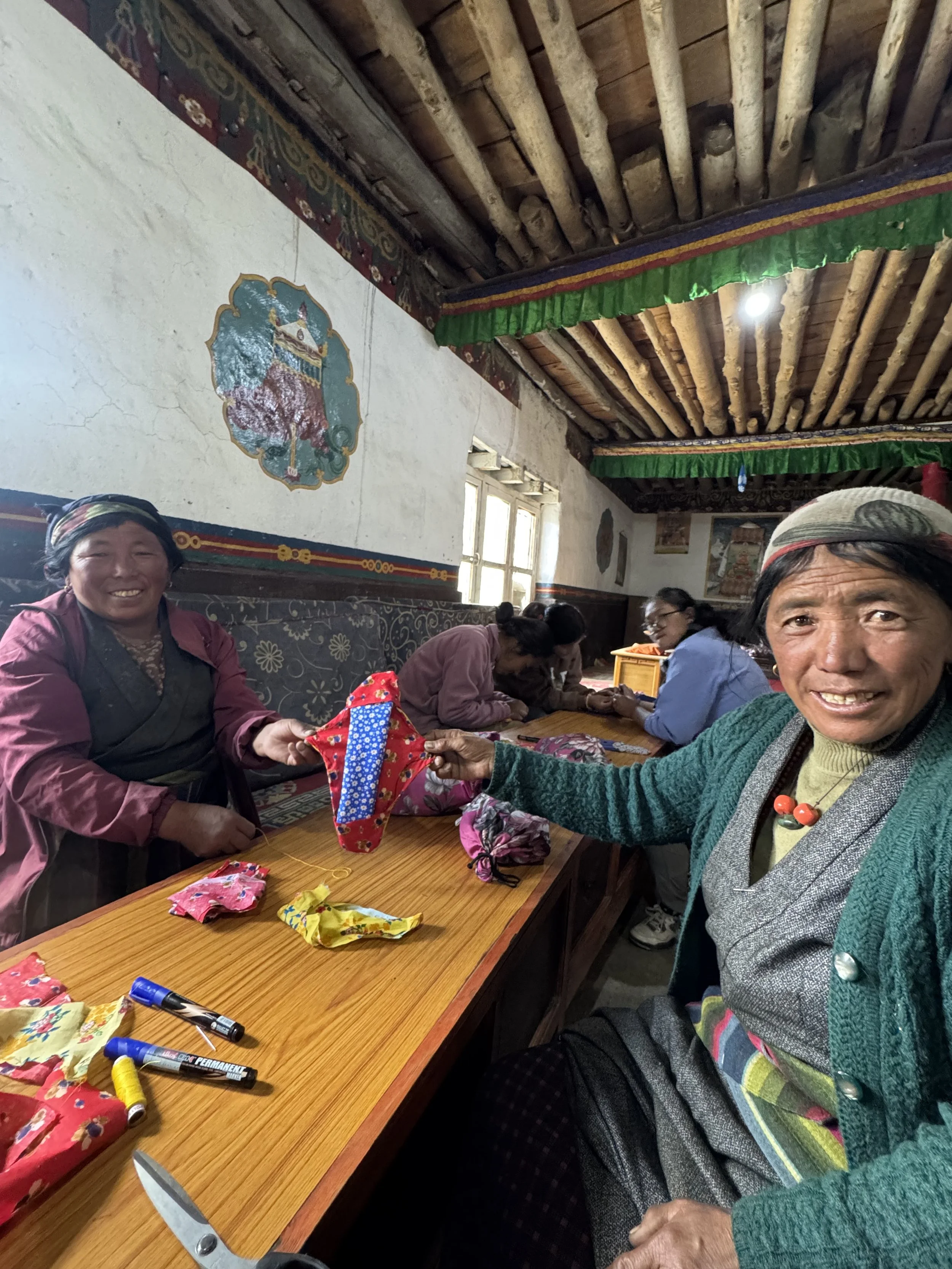 Mustang, often called the “Forbidden Kingdom,” is a remote Himalayan district in the rain shadow of the mountains, with elevations between 2,800 and 4,000 meters (9,186 and 13,123 feet). Its rugged terrain, deep gorges, and high-altitude deserts leave many villages isolated, where health education is scarce and cultural taboos silence conversations about menstruation. Here, many women and nuns still lack the knowledge and resources to manage their periods safely and confidently.