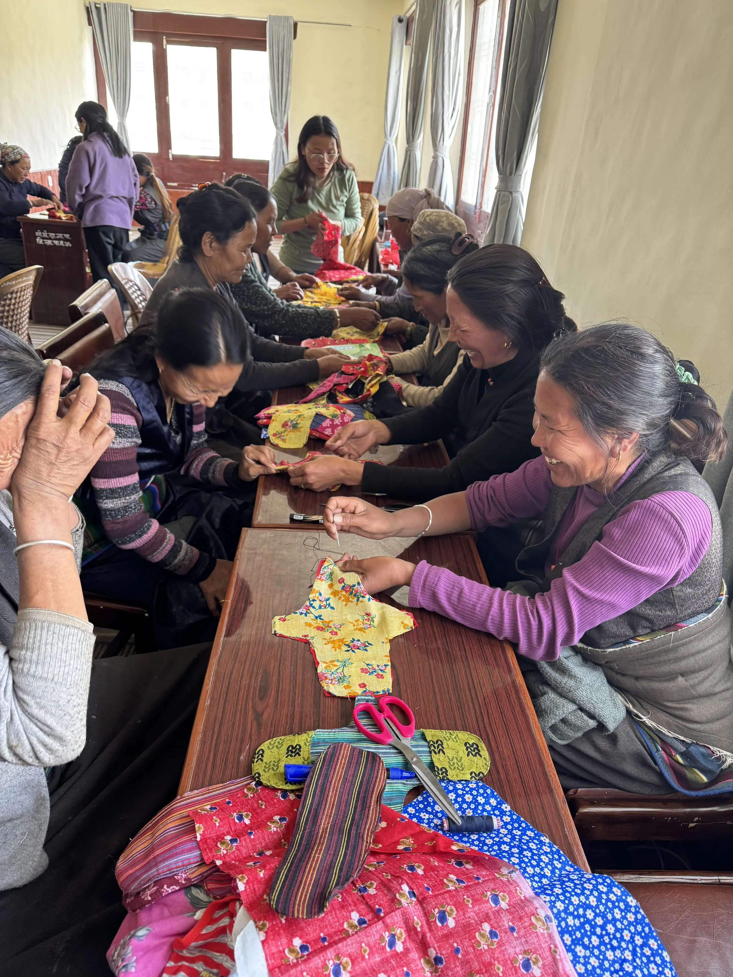 Charang village participants learn to make pads. Photo credit: Drokpo Nepal